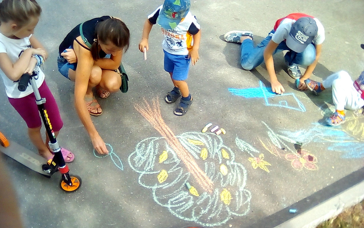 На площади у дома культуры были проведены игровая программа для детей «Город детства» и конкурс рисунков на асфальте «Разноцветная планета».