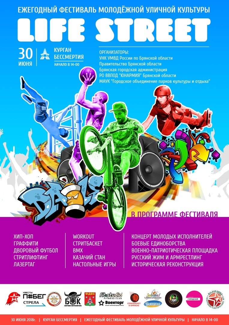 30 июня с 14-00 до 20-00 в парке им. 1000-летия города Брянска состоится X Молодёжный фестиваль уличной культуры "Lifestreet".